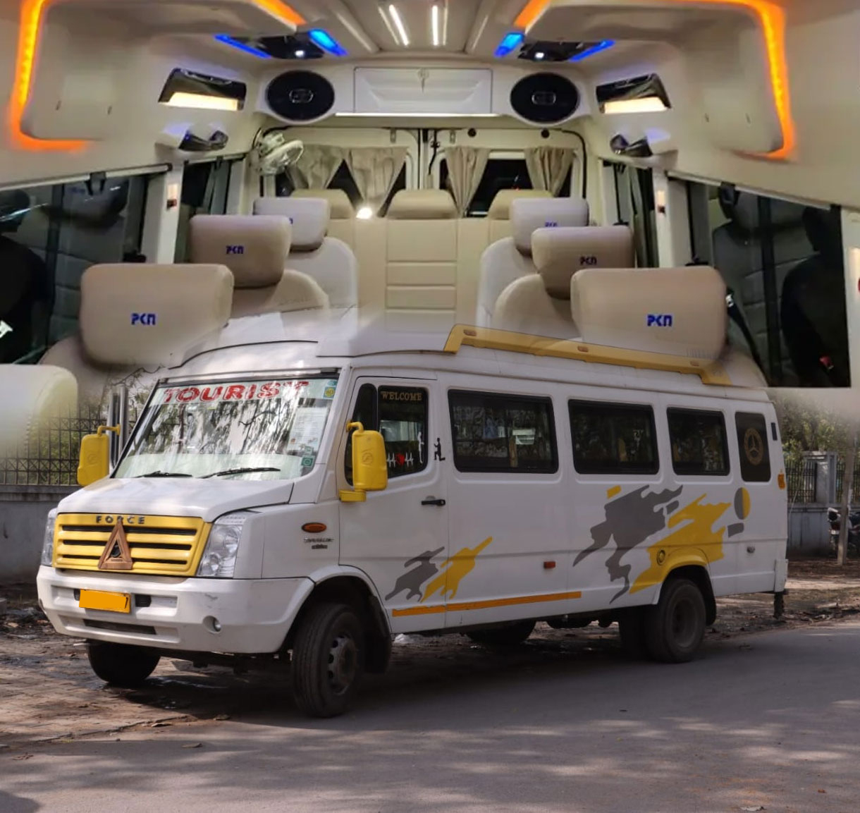 Delhi Tempo Travellers is one of the best tempo traveller rental companies in Delhi NCR for outstation trips to Agra, Jaipur, Mathura, Vrindavan, Ranthambore, Shimla, Manali, Nainital, Amritsar, and many more places. Our services are available in Delhi, Noida, Ghaziabad, Gurgaon, and Faridabad. A royal and fun-filled trip to Agra or wildlife adventure tour to Ranthambore or Jim Corbett with Tempo Traveller on Rent in Noida, Pilgrim tour to Golden Temple at Amritsar or Krishnabhoomi at Vrindavan Dham, hill station tour of Shimla or Nainital; for all trips, Tempo Traveller for Outstation is the best option for an entertaining group tour. Tempo travellers on rent offered by us is very economical in comparison to other service providers. Hiring a tempo Traveller on rent in Delhi gives you ultimate fun of enjoying Delhi sightseeing with family or friends. You can book them for multi-purpose as picnic, outstation trips, Local tour, Wedding parties, conferences, airport pick up and many other you think for. Experience the joy of travelling together and frame your new travel story with attractive deals on Force tempo traveller. Get best tempo traveller price and measure the length and breadth of North India iconic places with luxury and comfort.